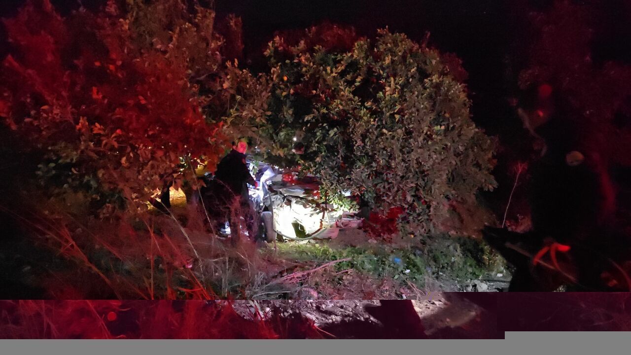 Çarpmanın etkisiyle 46 AAJ 946 plakalı otomobil yol kenarındaki narenciye bahçesine girdi.