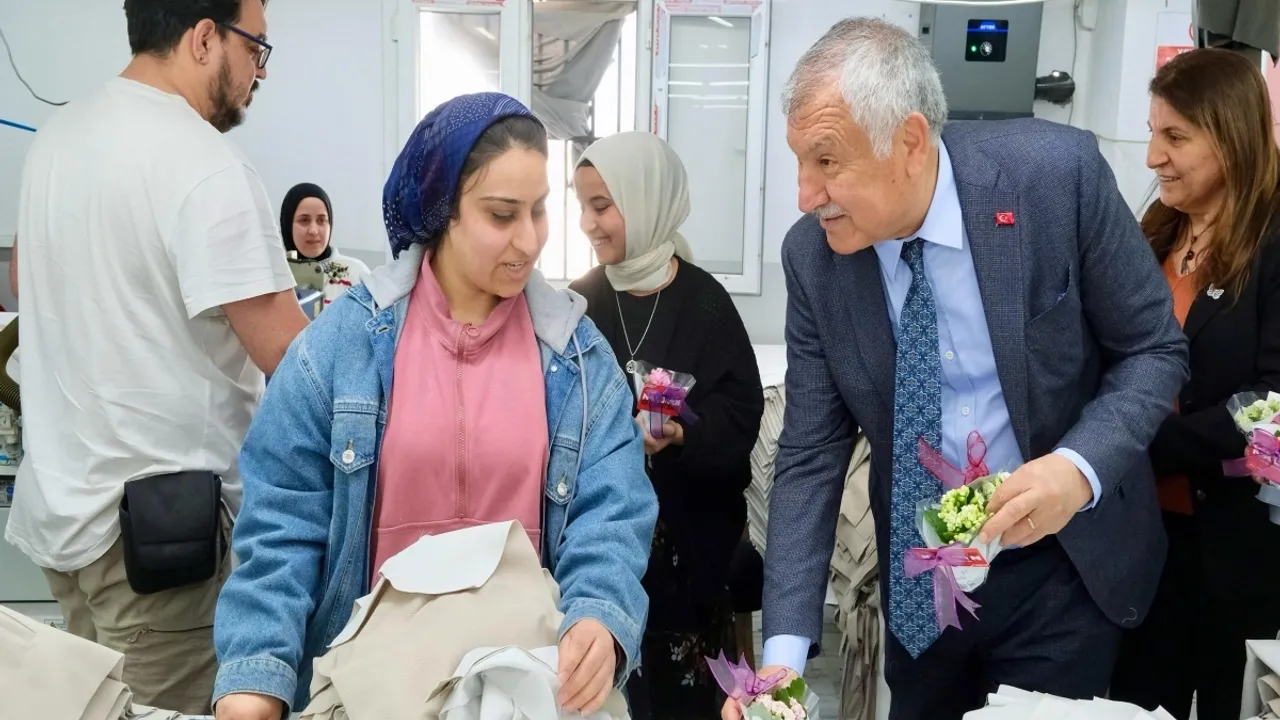 ADANA (İGFA) - Adana Büyükşehir Belediyesi’nin 8 Mart Dünya Kadınlar Günü kapsamında 11 güne yayılan etkinlikler birbiri ardına gerçekleştiriliyor. Üretim ve Dayanışma anlayışıyla ilgili farkındalık yaratma amaçlı etkinlikler sürerken, Adana Büyükşehir Belediye Başkanı Zeydan Karalar, 250 kadın tekstil işçisini ziyaret etti, çiçek sundu. Başkan Zeydan Karalar, Adana Büyükşehir Belediyesi bünyesinde faaliyet gösteren birçok dairede çalışan kadın personeli de ziyaret ederek 8 Mart Dünya Kadınlar Günlerini kutladı, çiçek verdi.