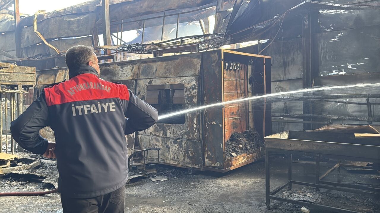 Organize Sanayi Bölgesi'ndeki orman ürünleri fabrikasında iki gün önce henüz belirlenemeyen nedenle başlayan ve dün kontrol altına alına yangın alanında ekipler çalışmalarını sürdürüyor.
