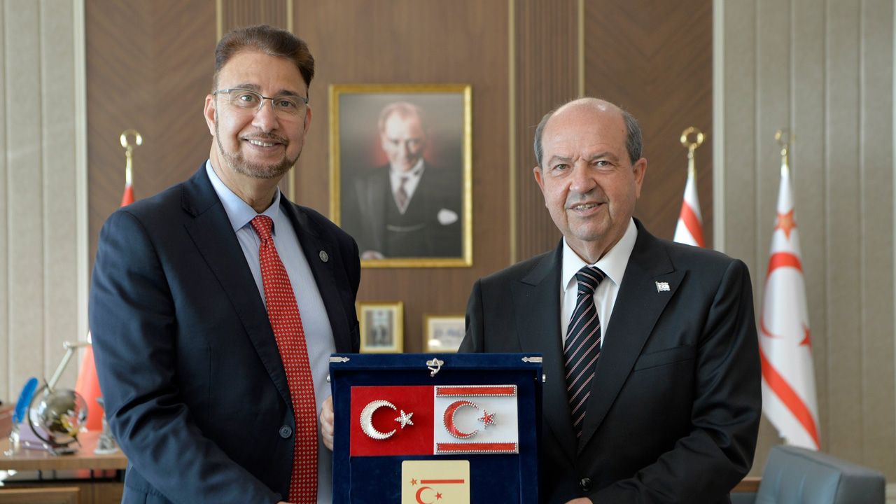 Khan, Kuzey Kıbrıs Cumhurbaşkanı Ersin Tatar ile görüşmüş, bölgede fahri doktora ile onurlandırılmıştı.