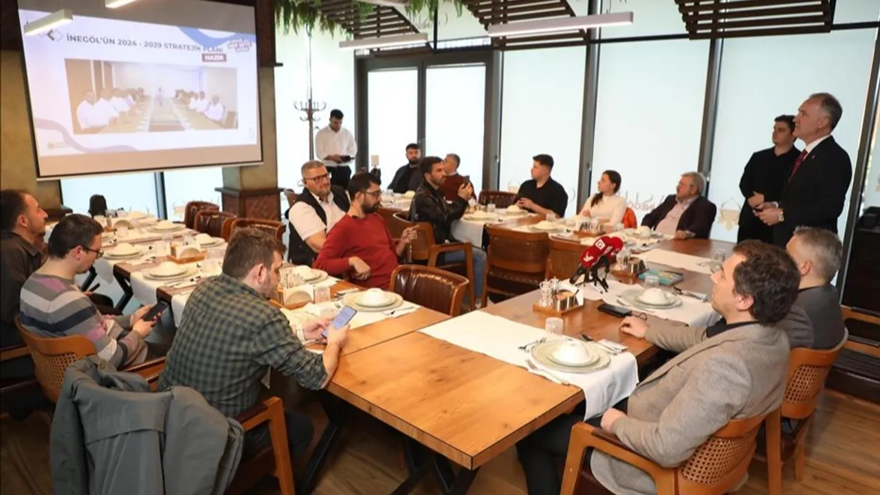 İftar öncesi Başkan Alper Taban basın mensuplarına İnegöl Belediyesi’nin hizmetlerine dair bir sunum gerçekleştirdi. 2024 yılı Mart ayında yapılan seçimlerin ardından geride kalan 1 yılda şehirde hayata geçirilen projeler ve kalan 4 yıllık sürede stratejik planda yer alan projelere ilişkin bilgilendirme yapıldı.