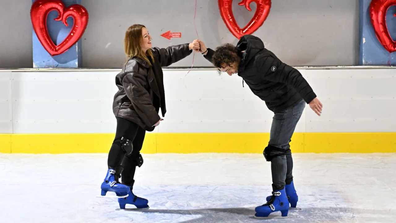 Antalya’da Muratpaşa Belediyesi’nin 1 milyon liralık yatırımla yenilediği buz pisti, 14 Şubat Sevgililer Günü’nde gece yarısına kadar açık olacak.ANTALYA (İGFA) - Antalya'da Muratpaşa Belediyesi’nin 450 metrekare genişliğinde, aynı anda 60 kişiye kadar hizmet verebilen Akdeniz’in ilk ve tek doğal buz pistinde Sevgililer Günü heyecan yaşanıyor.