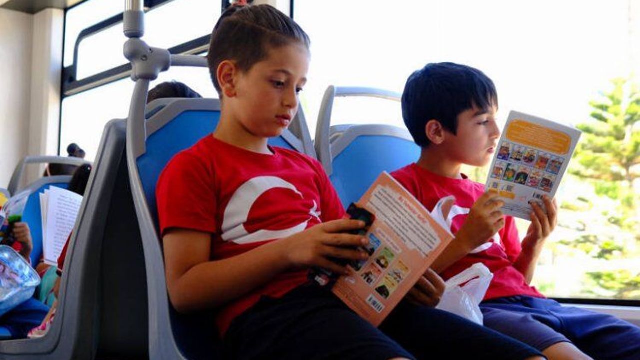 Milli Eğitim Bakanlığı'nın yürüttüğü "Dilimizin Zenginlikleri Projesi" kapsamında öğrenciler Antray'da kitap okuma etkinliği gerçekleştirdi.ANTALYA (İGFA) - Antalya Büyükşehir Belediyesi Antalya Ulaşım A.Ş.’ye bağlı Antray minik kitapseverleri ağırladı. Ellerinde kitaplarıyla 3.Etap Varsak-Müze etabı Gazi durağında Antray’a binen Yüzbaşı Mustafa Ertuğrul İlkokulu 3. Sınıf öğrencileri Müze durağına kadar yolculuk yaptı. Yolculuk boyunca kitap okuyan öğrenciler, hazırladıkları renkli pankartlarla da kitap okumanın önemine dikkat çekti.