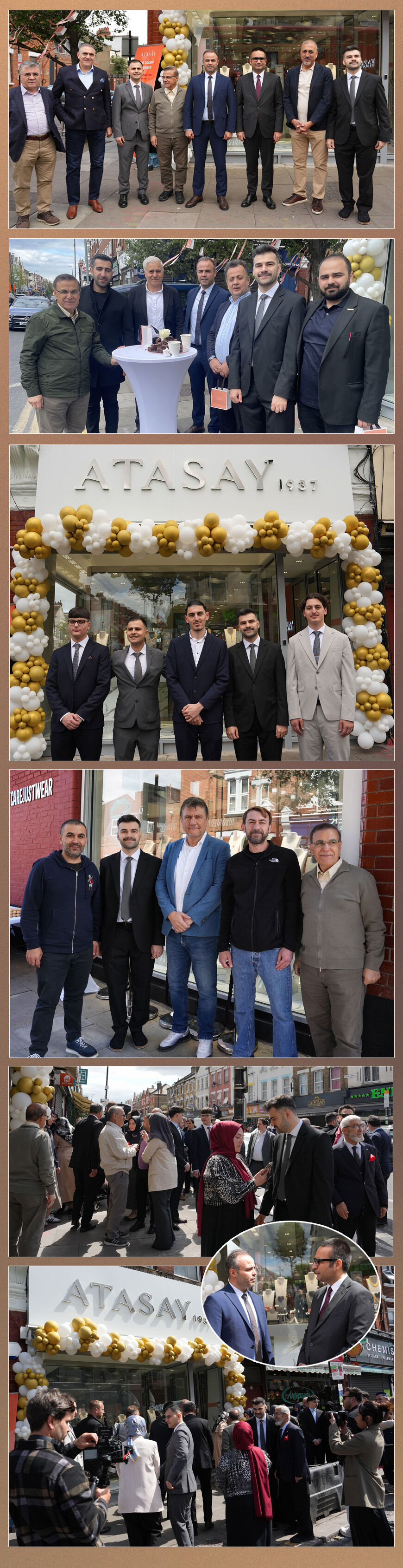 Açılış töreninde, Atasay Kuyumculuk Avrupa Müdürü Ali Koçak, Avrupalı Türk Markalar Birliği (ATMB) Başkanı Vehbi Keleş, yardımcısı Levent Acı, Genel Sekreter Mustafa Köker, MÜSİAD UK Genel Sekreteri Ali Demirci ve iş insanları hazır bulundu.