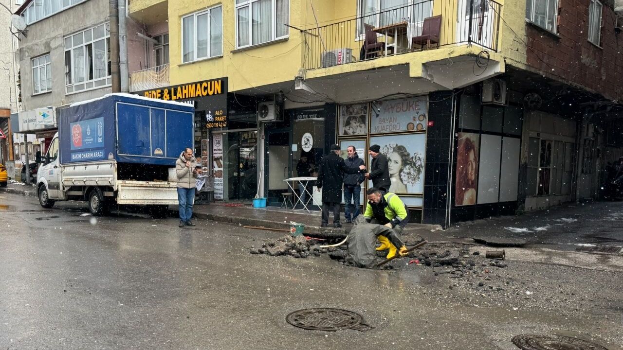 Yenisahra Mahallesi Fatih Caddesi'nde ana isale hattındaki boru henüz belirlenemeyen bir nedenle patladı.