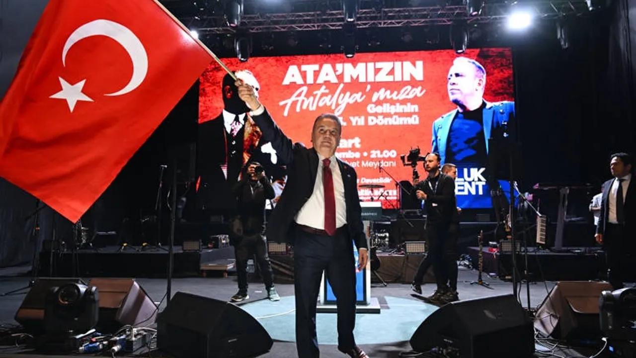 Antalya Büyükşehir Belediyesi, Gazi Mustafa Kemal Atatürk’ün Antalya’ya gelişinin 95’inci yıldönümünde ünlü sanatçı Haluk Levent’i Antalyalılarla buluşturdu.ANTALYA (İGFA) - Ulu Önder Mustafa Kemal Atatürk‘ün 6 Mart 1930 tarihinde Antalya ziyaretinin 95’inci yıldönümü Antalya Büyükşehir Belediyesi tarafından düzenlenen Haluk Levent konseriyle kutlandı. Ünlü sanatçı Haluk Levent, Cumhuriyet Meydanı’nı dolduran binlerce Antalyalıya unutulmaz anlar yaşattı. Konseri, Antalya Büyükşehir Belediye Başkanı Muhittin Böcek, Antalyalılarla birlikte coşku içinde izledi. Türk bayrakları ve telefon ışıklarıyla aydınlatılan meydan, Haluk Levent’in şarkılarıyla inledi.