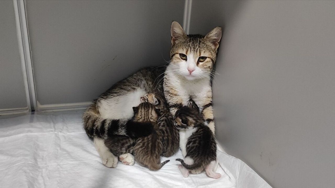 Kliniğe alınan hamile kedi, 5 yavru dünyaya getirdi.