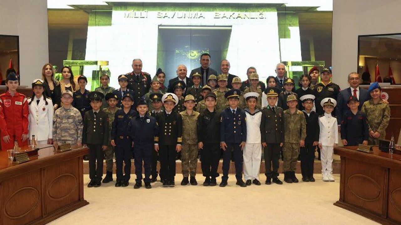 Millî Savunma Bakanı Yaşar Güler, TRT Çocuk Korosu ile Millî Savunma Bakanlığı'nda bir araya geldi.ANKARA (İGFA) - Millî Savunma Bakanı Yaşar Güler, 23 Nisan Ulusal Egemenlik ve Çocuk Bayramı dolayısıyla “Vatan Marşı”nı seslendiren TRT Çocuk Korosu ile Millî Savunma Bakanlığında bir araya geldi.