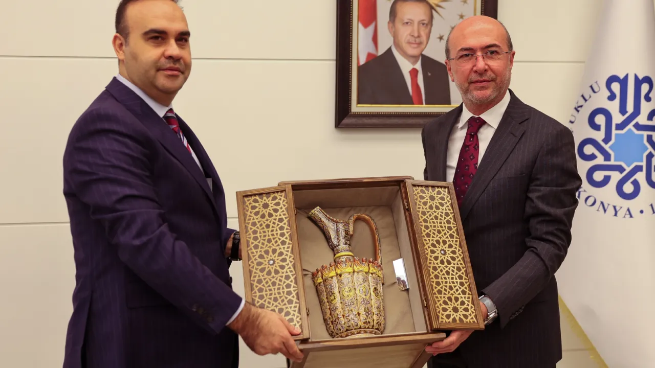 Konya’da bulunmaktan duyduğu memnuniyeti ifade eden Bakan Kacırev sahipliğinden dolayı Başkan Ahmet Pekyatırmacı’ya teşekkür etti. Selçuklu Belediyesi anı defterini de imzalayan Bakan Kacır’a ziyarette Başkan Pekyatırmacı tarafından Selçuklu Çini Eseri takdim etti.