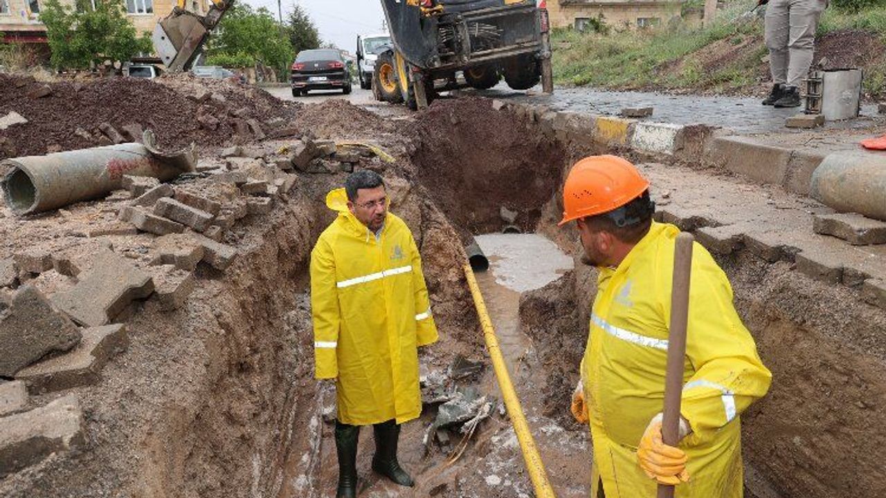 Nevşehir Belediye Başkanı Rasim Arı, Mehmet Akif Ersoy Mahallesi’nde meydana gelen su arızasına müdahale eden belediye ekiplerinin çalışma alanında incelemelerde bulundu.