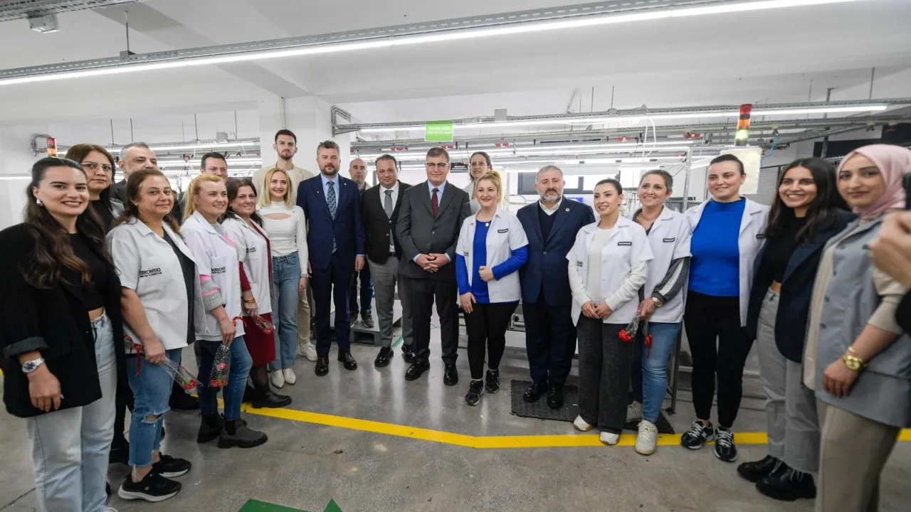 İzmir Büyükşehir Belediye Başkanı Dr. Cemil Tugay, 8 Mart Dünya Emekçi Kadınlar Günü öncesi Buca Ege Organize Sanayi Bölgesi’nde (BEGOS) çalışanlarının yüzde 85’i kadınlardan oluşan bir fabrikayı ziyaret etti. Kadın işçilerle sohbet eden Başkan Dr. Cemil Tugay, “Kadınlar iş hayatına, sosyal yaşantıya katılmadan bir ülke kalkınamaz ve güçlenemez. Sizler bizim için çok değerlisiniz, talep ettiğiniz her türlü konu için çalışacağız. Sorunları beraber çözeceğiz” dedi.İZMİR (İGFA) - İzmir Büyükşehir Belediye Başkanı Dr. Cemil Tugay, CHP İzmir İl Başkanlığı’nın 8 Mart Dünya Emekçi Kadınlar Günü programı kapsamında Buca’da kadın işçilerle bir araya geldi. Çalışanlarının yüzde 85’i kadın olan Narkonteks Tekstil AŞ’yi ziyaret eden Başkan Dr. Cemil Tugay, üretim yapan kadın işçilere karanfil dağıttı ve birlikte yemek yedi. Başkan Tugay’a CHP İzmir İl Başkanı Şenol Aslanoğlu, Buca Belediye Başkanı Görkem Duman, CHP Kadın Kolları üyeleri de eşlik etti. Narkonteks Tekstil AŞ Yönetim Kurulu Başkanı ve Buca Ege Organize Sanayi Bölgesi Yönetim Kurulu Başkanı Toygar Narbay, Yönetim Kurulu Başkan Yardımcısı Tolga Narbay ve yönetim kurulu üyeleri Tugay’a üretimlerine ilişkin sunum yaptı.