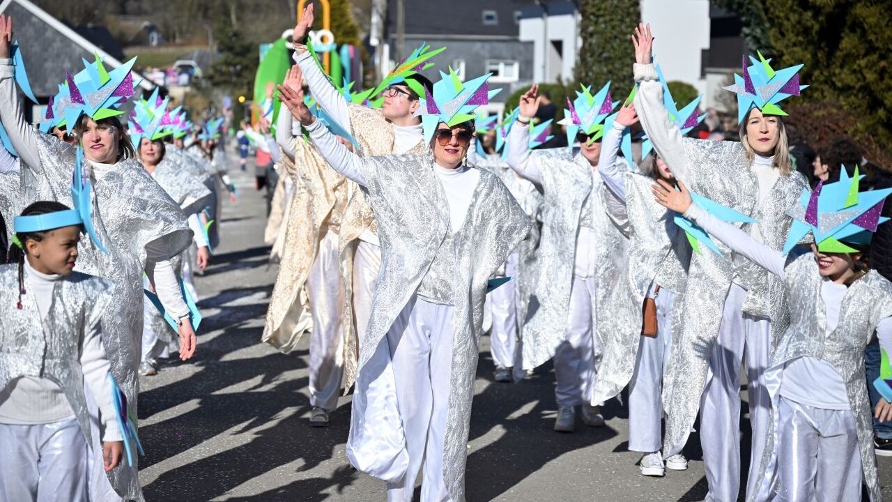 Rengarenk kostümleriyle köyün ana caddesinde dans ederek korteje katılan Faymonville sakinleri, izleyicilere konfetiler ve şekerler fırlattı.