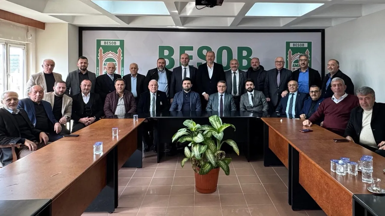 Bursa Esnaf ve Sanatkârlar Odaları Birliği (BESOB), kentin en önemli markalarından biri olan Bursaspor’a desteğini sürdürüyor.BURSA (İGFA) - Bursaspor Başkanı Enes Çelik ve beraberindeki yönetim kurulu üyeleri, BESOB Başkanı Fahrettin Bilgit’i ziyaret etti. Ziyarete; BESOB Yönetim Kurulu Başkanı Fahrettin Bilgit, BESOB yönetim kurulu üyeleri ve çok sayıda oda başkanı da katıldı.