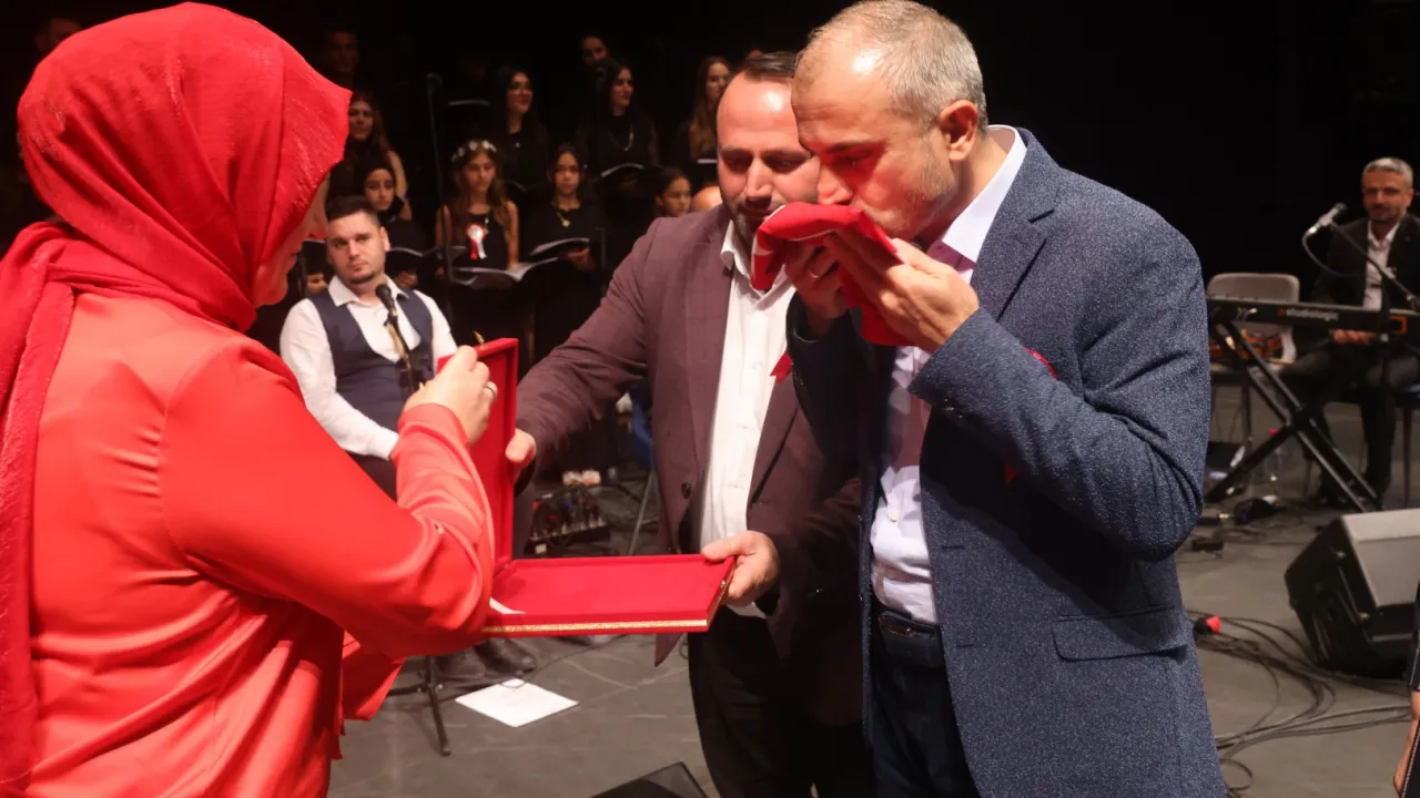 Çocuklarımızın milli ve manevi değerler çerçevesinde yetişmesi için canla başla çalışmaya devam edeceğiz. Bugün burada da bunun en güzel örneği olarak koromuz yer alıyor. Çayırovalı müzik sevdalılarımızın oluşturduğu koroyu hep birlikte izleyeceğiz” dedi. Başkan Çiftçi günün anısına koro şefi Erkan Kamil Yüksel’e çiçek takdim etti. Ayrıca Bilgievlerinde eğitim gören kursiyerler, elleriyle diktikleri Türk Bayrağı’nı Çayırova Belediye Başkanı Bünyamin Çiftçi’ye hediye etti.