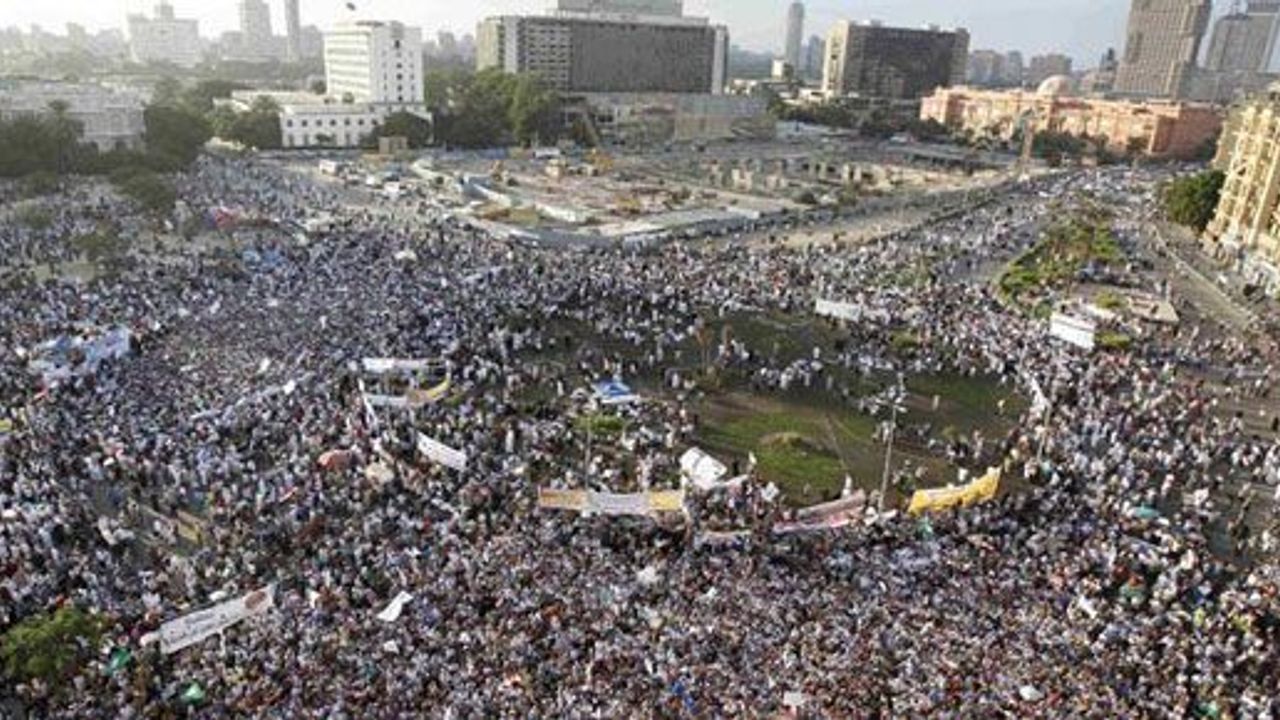 On binlerce Mısırlı bir kez daha devrimin simgesi Tahrir Meydanı'nda buluştu.