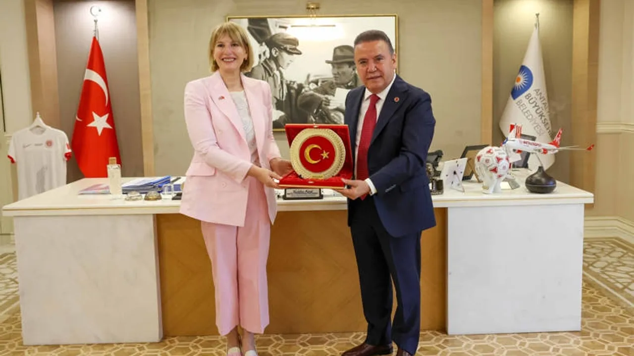 Antalya Büyükşehir Belediye Başkanı Muhittin Böcek, Birleşik Krallık Türkiye Büyükelçisi Jill Morris ve beraberindeki heyeti ağırladı. Ziyaretten duyduğu memnuniyeti dile getiren Başkan Muhittin Böcek, turizm sezonunun yaklaşmasıyla birlikte, Antalya'nın İngiltere ile olan ticaret, turizm ve kültürel bağlarını daha da güçlendirmek adına görüşmenin önem taşıdığını söyledi. Antalya’nın tarım ve turizm potansiyeli hakkında heyete bilgi veren Başkan Böcek, Antalya Büyükşehir Belediyesi’nin yerelden kalkınma ve çevre konusunda yaptığı çalışmaları anlattı.