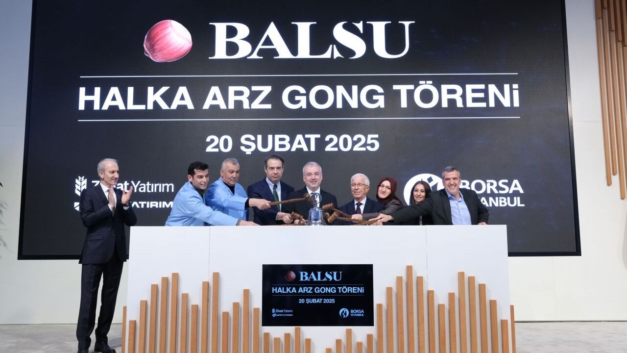 Ziraat Yatırım ve İnfo Yatırım liderliğinde, 12, 13 ve 14 Şubat'ta gerçekleşen talep toplama sürecini tamamlayan şirketin gong töreni, Borsa İstanbul AŞ Genel Müdürü Korkmaz Ergun, Balsu Gıda Üst Yöneticisi (CEO) Ahmet Bilge Anbarlılar, Ziraat Yatırım Genel Müdürü Akın Demirbağ, İnfo Yatırım Yönetim Kurulu Başkanı Namık Kemal Gökalp ve çok sayıda davetlinin katılımıyla gerçekleştirildi.