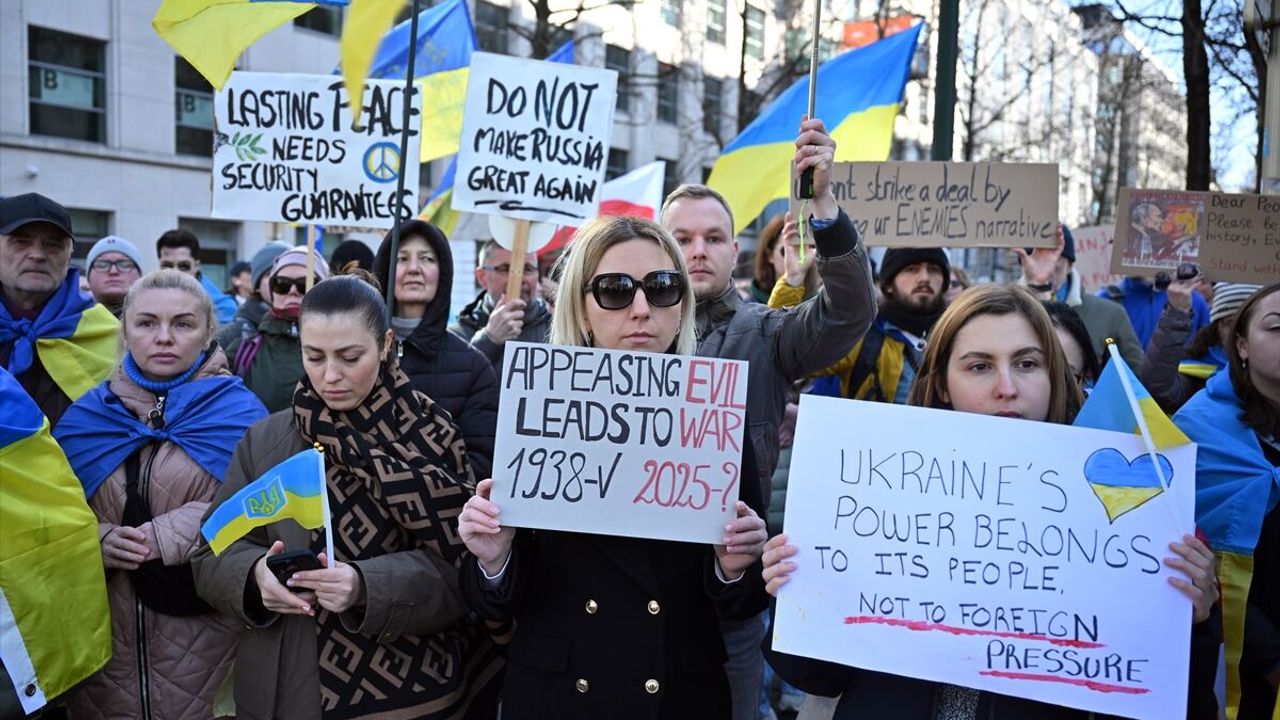 BRÜKSEL (AA) - Brüksel'de yüzlerce kişi, Ukrayna Devlet Başkanı Volodimir Zelenskiy ile Washington'da yaşadığı tartışmanın ardından ABD Başkanı Donald Trump'ı protesto etti.