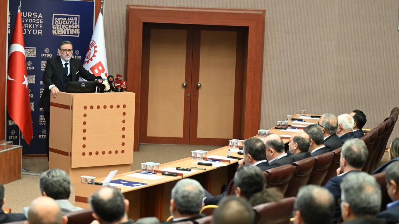 Toplantıda konuşan BTSO Yönetim Kurulu Başkanı İbrahim Burkay, son yıllarda küresel ekonomide çok büyük dalgalanmaların meydana geldiğini söyledi. Özellikle Donald Trump'ın ABD Başkanlığı koltuğuna yeniden oturmasıyla başlayan sürecin etkilerinin tüm dünyada hissedildiğini ifade eden Başkan Burkay, siyasetten ekonomiye, ticaretten sermayeye kadar her alanda müthiş bir değişim ve dönüşüm yaşandığını ifade etti. Türkiye’nin bu süreci çok iyi okuması gerektiğini ifade eden Başkan Burkay, “Biz ülke olarak tarih boyunca hiç kolay işlerin içinde olmadık. Özellikle bulunduğumuz coğrafi konum itibariyle, komşularımızın durumu ve tarihimizin bize yüklediği sorumluluğun gereği olarak hep zorları başardık. Türkiye, inşallah dünyanın yeniden şekillendiği bu süreçten de başarıyla çıkacaktır.” dedi.