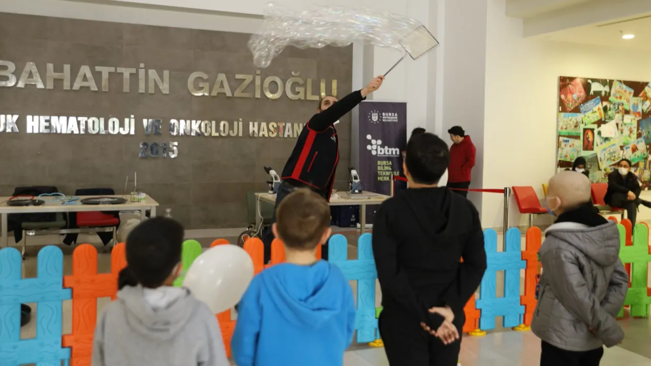 Bursa Büyükşehir Belediyesi ve LÖDER iş birliği ile düzenlenen etkinlikle, Bursa Uludağ Üniversitesi Sabahattin Gazioğlu Çocuk Hematoloji ve Onkoloji Hastanesi’nde tedavi gören çocuklar moral buldu.BURSA (İGFA) - Bursa Büyükşehir Belediyesi Sağlık İşleri Dairesi Başkanlığı Halk Sağlığı ve Sağlıklı Yaşam Şube Müdürlüğü, Bilim Teknoloji Merkezi ve Bursa Lösemili Çocuklara Yardım Derneği (LÖDER) iş birliği ile Uluslararası Çocukluk Çağı Kanserleri Günü kapsamında çocuklara yönelik çeşitli etkinlikler düzenlendi.