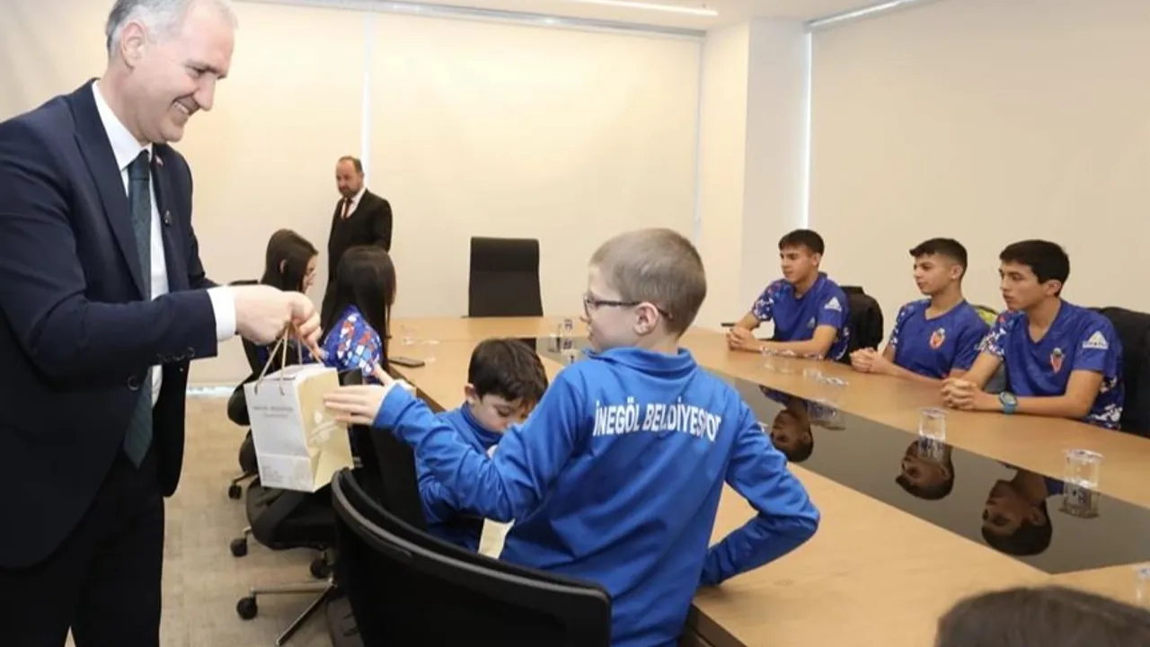 Bursa'ya bağlı İnegöl Belediye Başkanı Alper Taban, İnegöl Belediyespor formasıyla 2024 yılında ulusa ve uluslararası müsabakalarda farklı branşlarda birincilik elde eden 32 sporcuyla buluştu. Başkan Taban, şampiyonları tebrik edip hediye takdimi gerçekleştirdi.BURSA (İGFA) - İnegöl Belediye Başkanı Alper Taban, İnegöl Belediyespor formasıyla 2024 yılında ulusa ve uluslararası müsabakalarda farklı branşlarda birincilik elde eden 32 sporcuyla buluştu. Başkan Taban, şampiyonları tebrik edip hediye takdimi gerçekleştirdi.