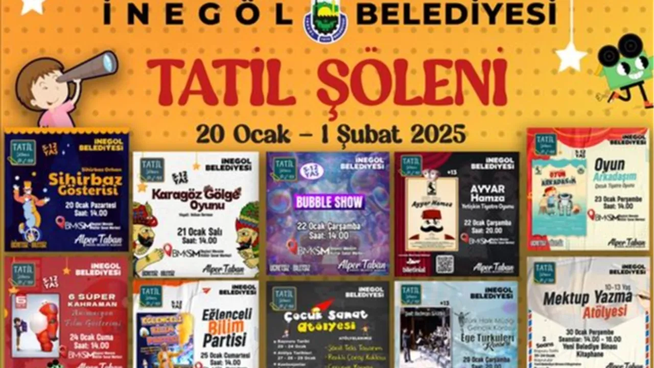 Tatil süresince sadece Pazar günleri etkinliklere ara verilecek. Yarıyıl tatili etkinlikleri 27 Ocak Pazartesi günü itibariyle devam edecek. Pazartesi günü 11.00-12.00 Saatleri arasında İnegöl Belediyesi Gençlik Merkezinde “Şönil Tela Tasarım Etkinliği” 7-10 yaş arası çocuklarla yapılacak. 28 Ocak Salı günü yine 11.00-12.00 saatleri arasında Gençlik Merkezinde “Renkli Çoraplar Kuklası Etkinliği” yapılacak. 29 Ocak Çarşamba günü de bu etkinlikler kapsamında aynı yer ve saatte “Dil Çubuklarından Çerçeve Yapımı” etkinliği gerçekleştirilecek. 29 Ocak Çarşamba akşamında da yetişkinlere yönelik etkinlikler kapsamında 20.00’da Beşinci Mevsim Kültür Sanat Merkezinde THM Gençlik Korosu Ege Türküleri Konseriyle sahne alacak. 30 Ocak Perşembe günü 14.00’da Yeni Yaşam Alanı ve Kent Meydanı içerisinde bulunan D Blok Kitaphanede ortaokul seviyesindeki öğrencilere yönelik “Mektup Yazma Atölyesi” etkinliği yapılacak. 31 Ocak Cuma günü 14.00’da yine D blok kitaphanede “Origami Etkileşimli Hikaye Atölyesi” ilkokul düzeyi öğrencilere yönelik yapılacak. Aynı gün 12.00-16.00 saatleri arasında da D blok kitaphanede “3 boyutlu kalemlerle tasarım atölyesi” 7-8 yaş grubu öğrencilere yönelik gerçekleştirilecek. 31 Ocak Cuma akşamı 20.00’da Beşinci Mevsim Kültür Sanat Merkezinde Volkan İmançer gençlik pop konseri 13 yaş ve üzeri tüm vatandaşlara yönelik yapılacak. 01 Şubat Cumartesi günü 12.00-15.00 saatleri arasında D blok kitaphanede “Robotik Kodlama ve Yapay Zeka Atölyesi” etkinliği 9-10 yaş grubu öğrencilere yönelik yapılacak. Sömestr tatilinin final programında ise 01 Şubat Cumartesi günü 14.00’da Beşinci Mevsim Kültür Sanat Merkezinde kukla gösterisi 5-12 yaş arası öğrenciler için sahnelenecek.