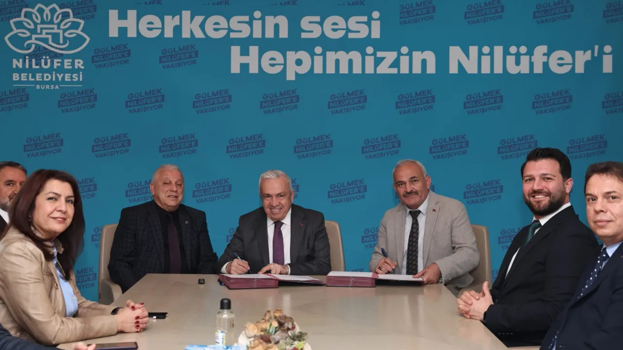 Bursa'da Nilüferliler’in pazar yerlerinde daha temiz, sağlıklı ve güvenli bir şekilde alışveriş yapabilmesi için Nilüfer Belediyesi, Bursa Seyyar Pazarcılar Odası ve Bursa Yaymacılar Odası ile protokol imzaladı.BURSA (İGFA) - Nilüfer Belediyesi, pazar yerlerinin kullanımına ilişkin 2 ayrı protokole imza attı. Nilüfer Belediye Başkanı Şadi Özdemir, Bursa Seyyar Pazarcılar Esnaf Odası Başkanı Ahmet Refik Aksu ile Bursa Yaymacılar ve Benzerleri Odası Başkanı Fahrettin Tüccaroğlu’yla birlikte Nilüfer Belediyesi Halk Evi’ndeki makamında bir araya geldi.