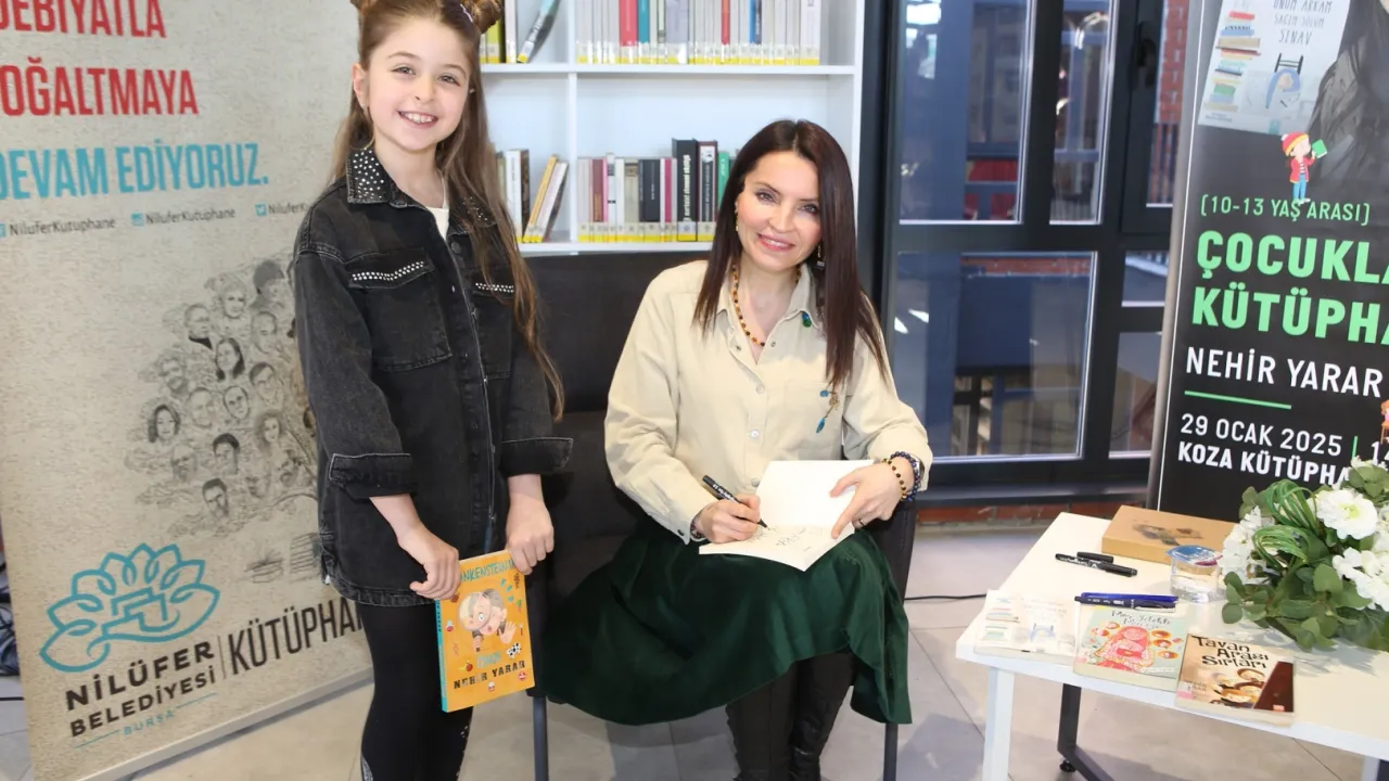 Yazar Nehir Yarar, Nilüferli çocuklarla kütüphanede bir araya gelerek onları kitaplar diyarında yolculuğa çıkardı. Yarar, “Önüm Arkam Sağım Solum Sınav” isimli kitabından bölümler okuduğu keyifli bir söyleşi gerçekleştirdi.BURSA (İGFA) - Bursa Nilüfer Belediyesi Kütüphane Müdürlüğü’nün düzenlediği, “Çocuklar Kütüphanede” söyleşisinde Yazar Nehir Yarar çocuklarla buluştu. Görükle’deki Koza Kütüphane’de gerçekleşen etkinliğe 10-13 yaş arası 50 çocuk katıldı.