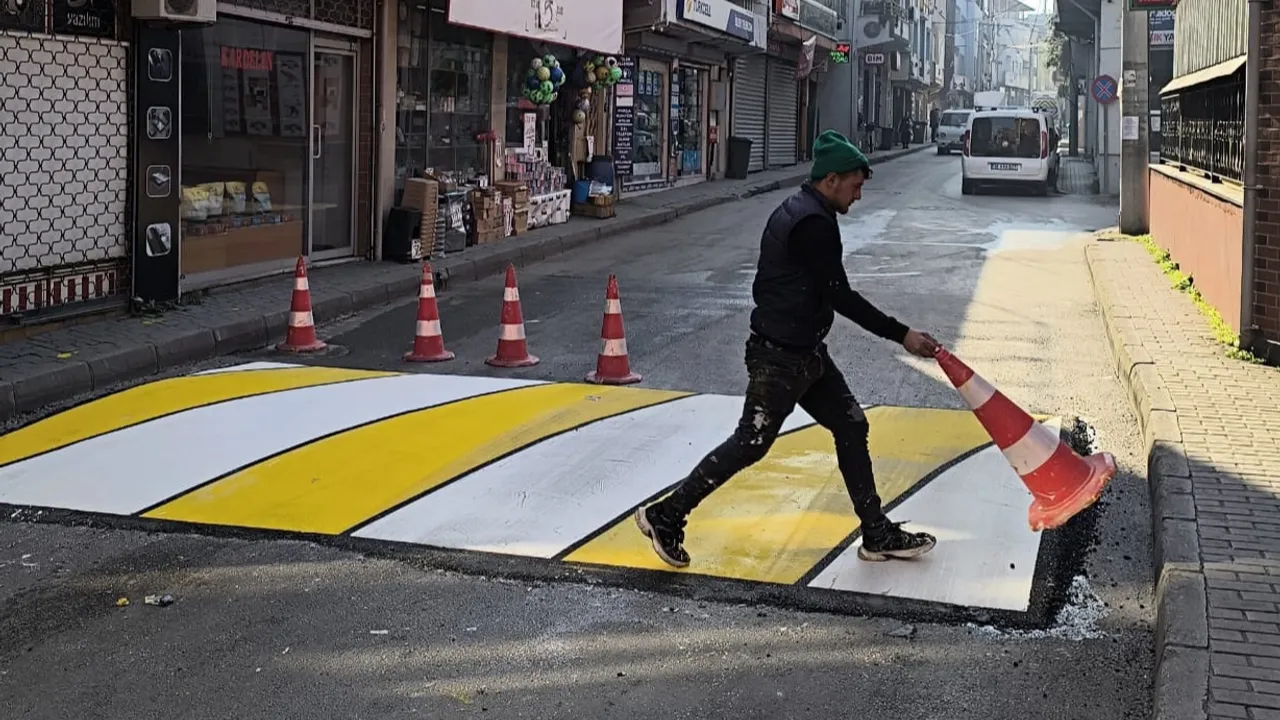 Bursa'da Osmangazi Belediyesi, ilçe genelinde trafik güvenliğini artırmak amacıyla okul önlerinde ve muhtelif cadde ile sokaklarda hız kesici kasis ve şerit çalışması gerçekleştirdi.BURSA (İGFA) - Osmangazi Belediyesi bir yandan ilçenin yollarını güzelleştirirken bir yandan da yolları hem yayalar hem de araçlar için güvenli hale getiriyor.