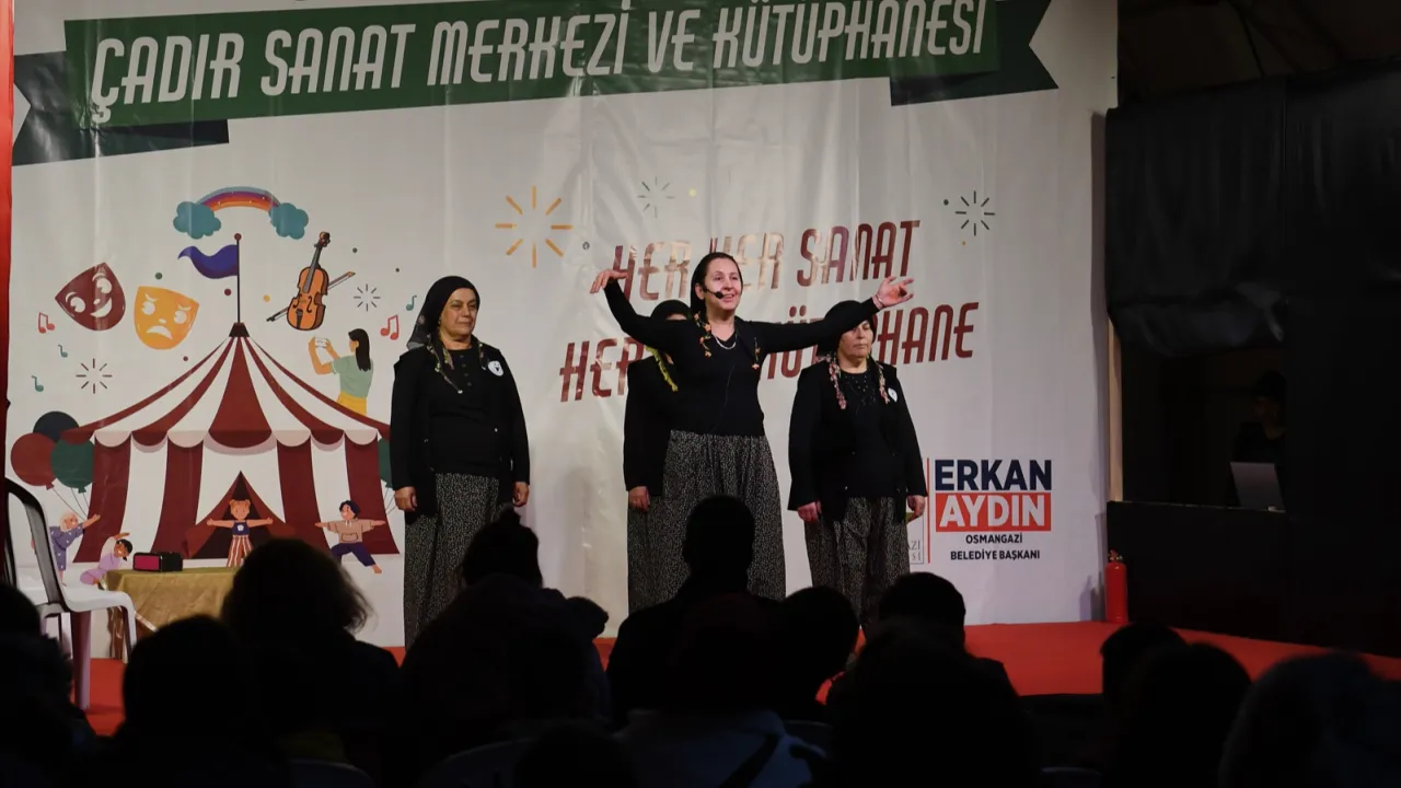 Doğanın Gözyaşı adlı tiyatro oyununda köylerinin gelenek, görenek ve köylerine zararı olan maden ocaklarına karşı verdikleri mücadeleyi anlattıklarını ifade eden Kozak Yukarıbey Köy Tiyatrosu Oyuncuları, “Köy halkımız, çam ağaçlarından topladıkları çam fıstıkları ile geçimini sağlıyor. Maden şirketleri çam ağaçlarımıza zarar verdi. Oynadığımız oyunda bunu dile getiriyoruz. Bu oyun ile inşallah sesimizi duyururuz ve bu madenlere bir çare bulunur. 3 yıldır tiyatro yapıyoruz. Tiyatro sayesinde özgüvenimiz geldi. Biz hem oyun oynuyoruz hem de çok eğleniyoruz. Osmangazi’de olmaktan çok mutluyuz” dedi.