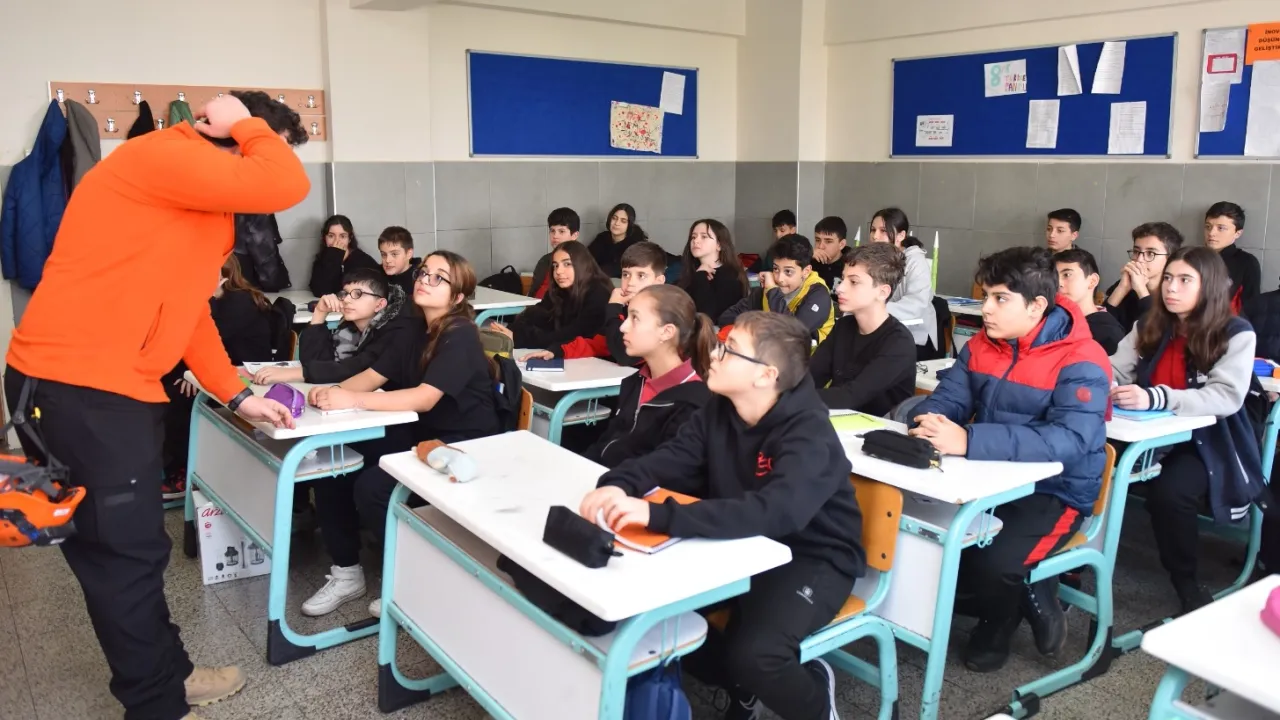 Bursa Yıldırım Belediyesi Afet İşleri Müdürlüğü Ekipleri, Peyami Safa Ortaokulu Öğrenci ve öğretmenlerine deprem farkındalık eğitimi ve tatbikatı düzenledi.BURSA (İGFA) - Bursa Yıldırım Belediyesi, deprem ve depreme hazırlık konusunda farkındalık oluşturan çalışmalarına devam ediyor.