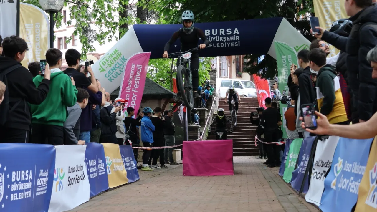 Bursa Büyükşehir Belediyesi tarafından düzenlenen Bursa Uluslararası Spor Festivali kapsamında yapılan Türkiye’nin ilk extrem bisiklet yarışı ‘Urban Downhill’, izleyenlere adrenalin dolu anlar yaşattı.BURSA (İGFA) - Bursa Valiliği ve Bursa Büyükşehir Belediyesi öncülüğünde Gençlik ve Spor İl Müdürlüğü, İl Milli Eğitim Müdürlüğü, Bursa Kent Konseyi ve Bursa Büyükşehir Belediyespor Kulübü iş birliğinde düzenlenen Bursa Uluslararası Spor Festivali, 17 ilçede devam eden spor etkinlikleriyle dolu dolu geçiyor.