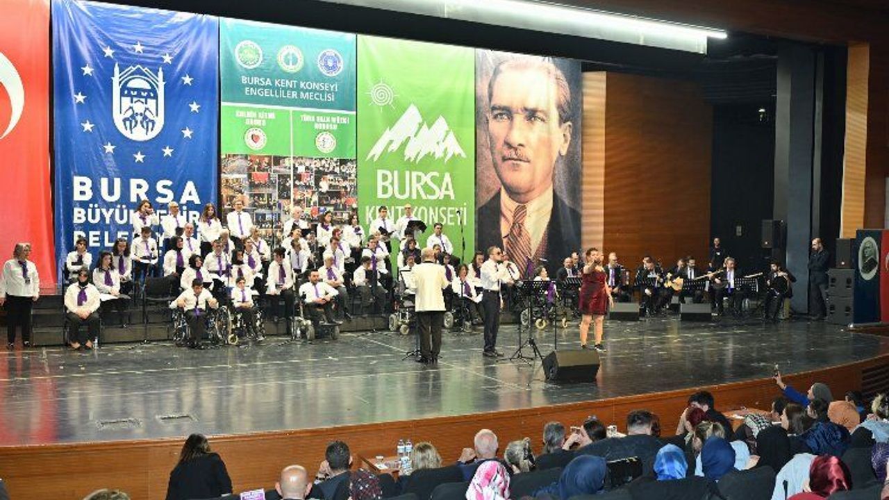 Ardından Şef Kemal Kamalı önderliğinde Türk Halk Müziği korosu sahne aldı. Orkestra Şube Müdürlüğü sanatçılarının eşlik ettiği konserde, Engelliler Meclisi üyeleri tarafından solo ve koro şarkılar seslendirildi. Sahne alan özel bireyler, ‘Yüksek yüksek tepelere’, ‘Eşarbını yan bağlama’, ‘Çam başına çıktım’, ‘Kiremitte buz musun’ ve ‘Çay elinden öteye’ gibi Türk Halk Müziği’nin önemli eserlerini vatandaşlarla birlikte beraber söyledi.