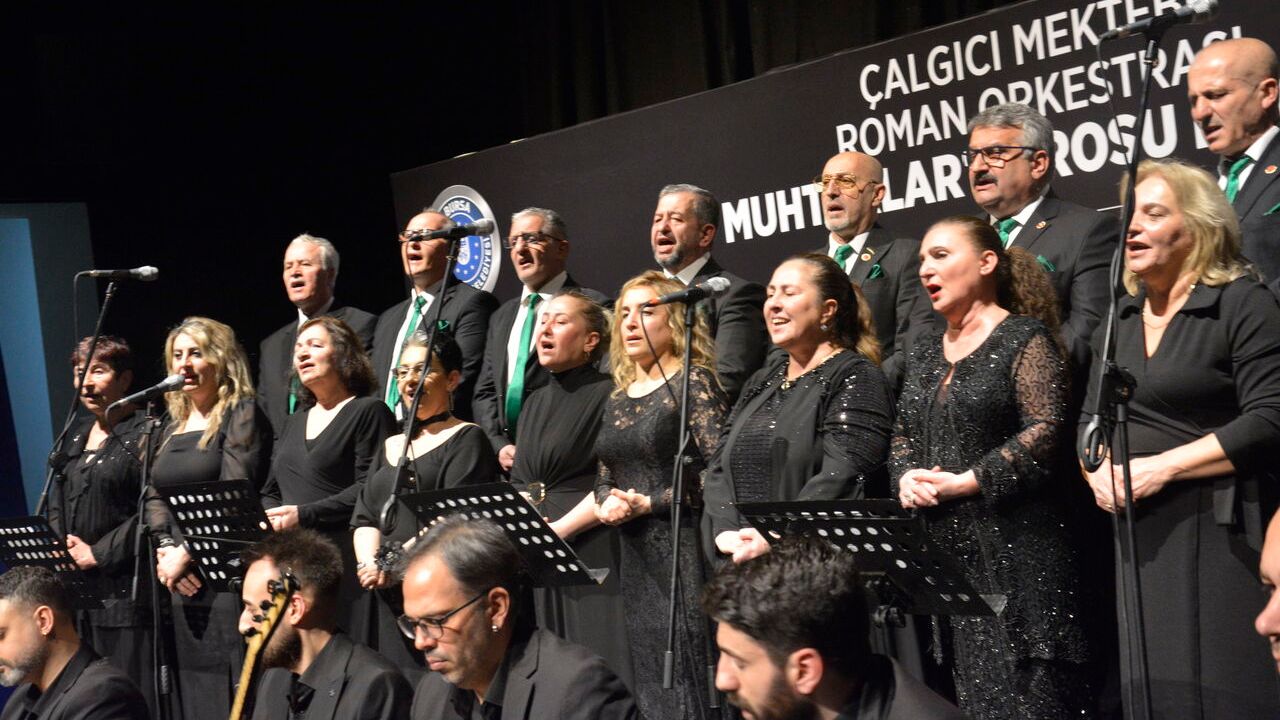 Gecede sahne alan Muhtarlar Korosu, Türk Halk Müziği ve Türk Sanat Müziği eserlerinden oluşan repertuvarı orkestra eşliğinde seslendirdi.