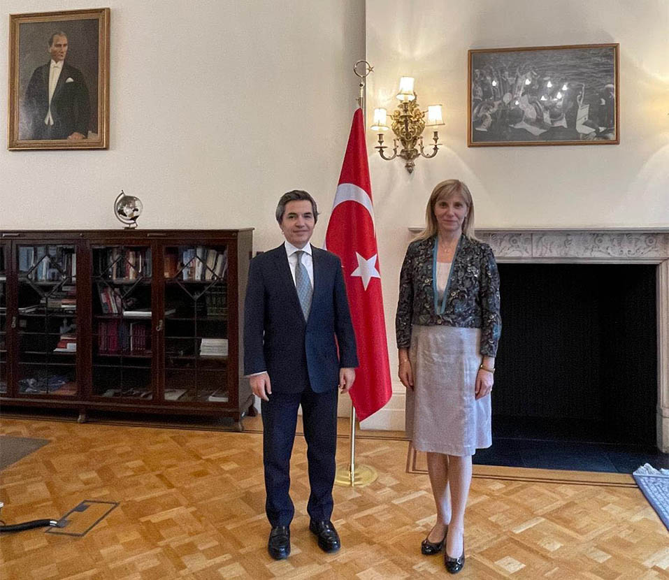 Büyükelçi Füsun Aramaz göreve başlamasının ardından Türkiye’nin Londra Büyükelçiliğini ziyaret ederek, Büyükelçi Osman Koray Ertaş’ı ziyaret etti.