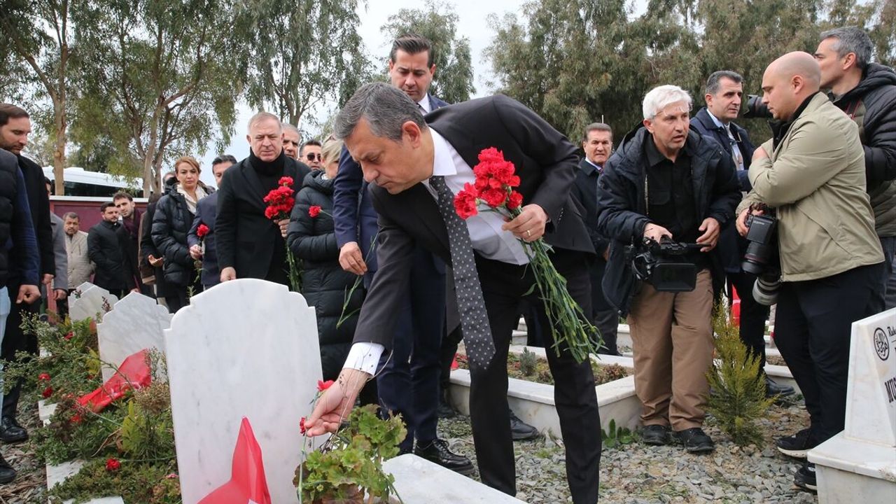 Özel, Antakya ilçesinde 6 Şubat 2023'teki depremlerde yaşamını yitirenlerin defnedildiği Narlıca Deprem Mezarlığı'nı ziyaret etti, kabirlere kırmızı karanfil bırakıp dua etti.