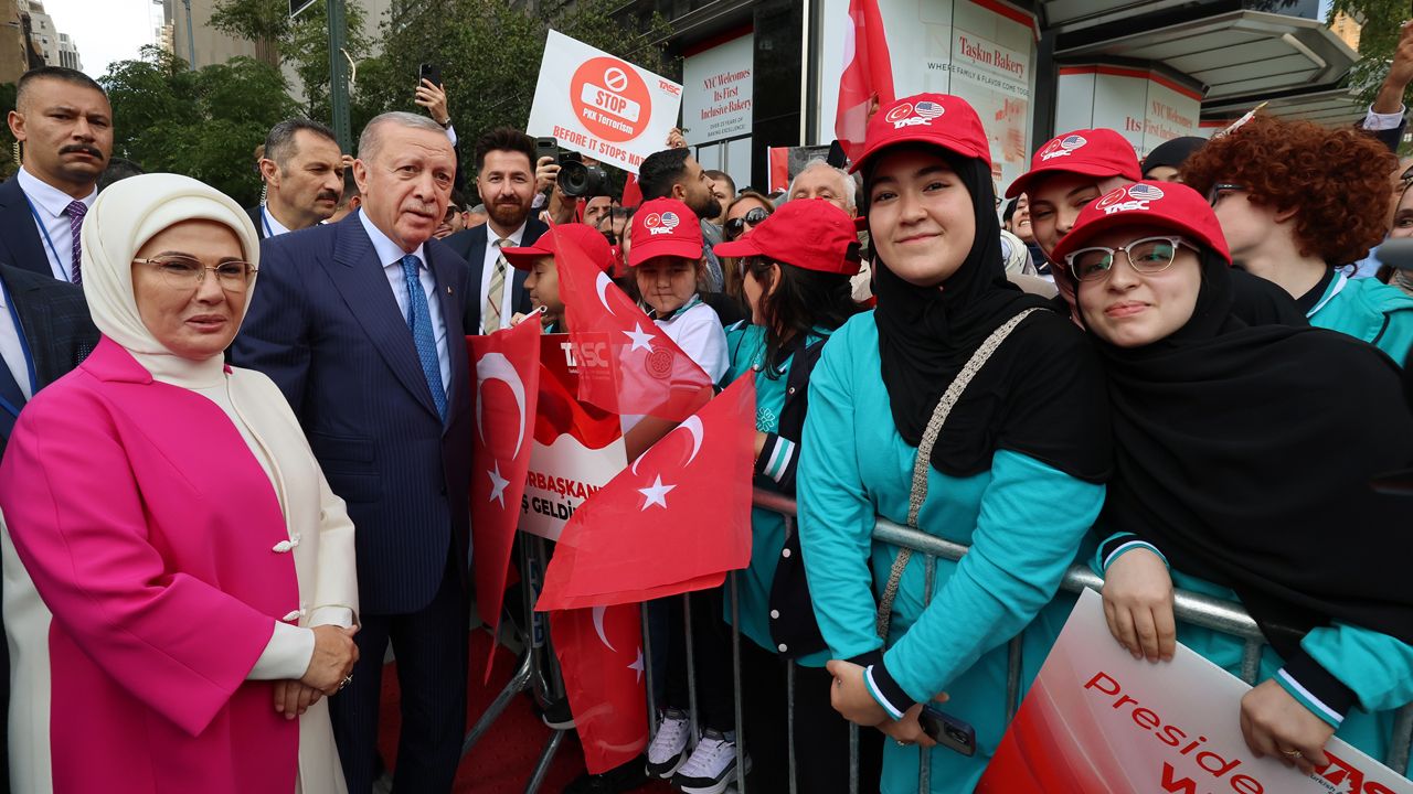 Cumhurbaşkanı Recep Tayyip Erdoğan, Birleşmiş Milletler (BM) 80. Genel Kurulu'na katılmak ve çeşitli temaslarda bulunmak üzere geldiği ABD'nin New York kentindeki Türkevi'ne girişinde sevgi gösterileriyle karşılandı.
