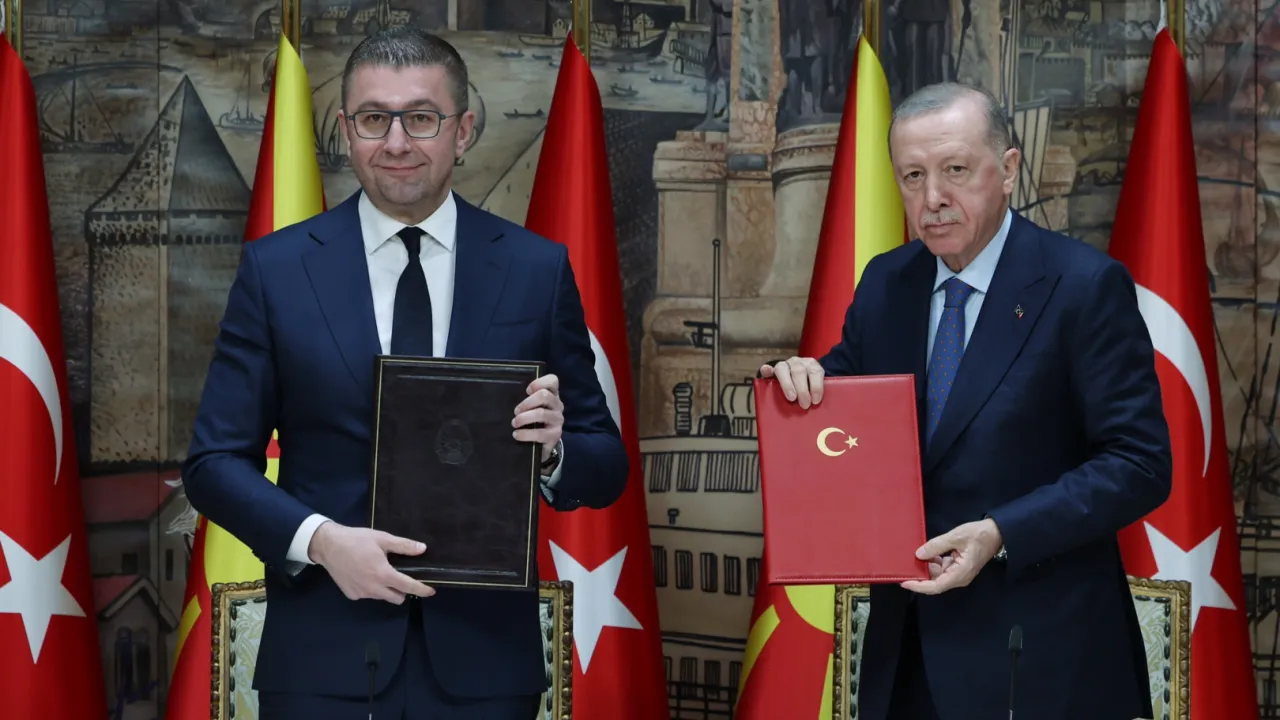 Basın toplantısı öncesi gerçekleştirilen imza töreninde, Cumhurbaşkanı Erdoğan ile Kuzey Makedonya Başbakanı Mickoski, iki ülke arasında Yüksek Düzeyli İşbirliği Konseyi kurulmasına ilişkin ortak siyasi bildiriyi imzaladı. İmza töreni ve basın toplantısında, Dışişleri Bakanı Hakan Fidan, Çevre, Şehircilik ve İklim Değişikliği Bakanı Murat Kurum, Cumhurbaşkanlığı İletişim Başkanı Fahrettin Altun ile Cumhurbaşkanı Dış Politika ve Güvenlik Başdanışmanı Büyükelçi Akif Çağatay Kılıç da yer aldı.