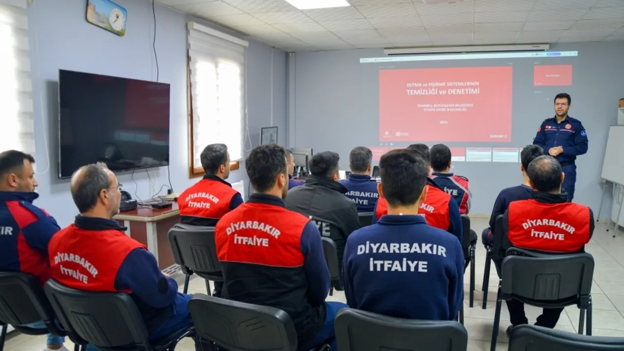 Diyarbakır Büyükşehir Belediyesi İtfaiye Dairesi Başkanlığı’nda görev yapan itfaiye personeline baca yangınları ve müdahale yöntemlerine dair eğitim verildi.