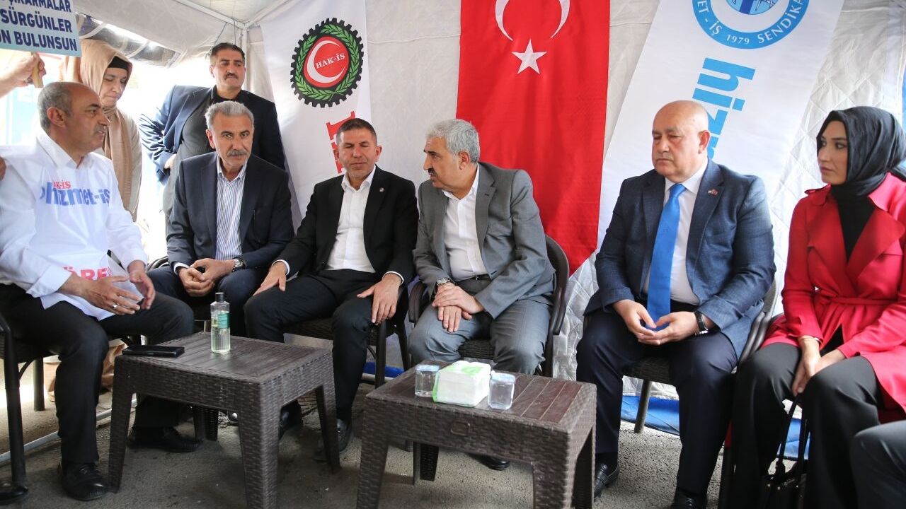 AK Parti Diyarbakır İl Başkanı Ömer İler, Hizmet-İş Genel Sekreter Yardımcısı Zekeriya Koca, Memur-Sen Diyarbakır Şube Başkanı Ramazan Tekdemir ve HAK-İŞ Diyarbakır İl Başkanı Mehmet Aküzüm, eylem yapan işçilere destek ziyaretinde bulundu.