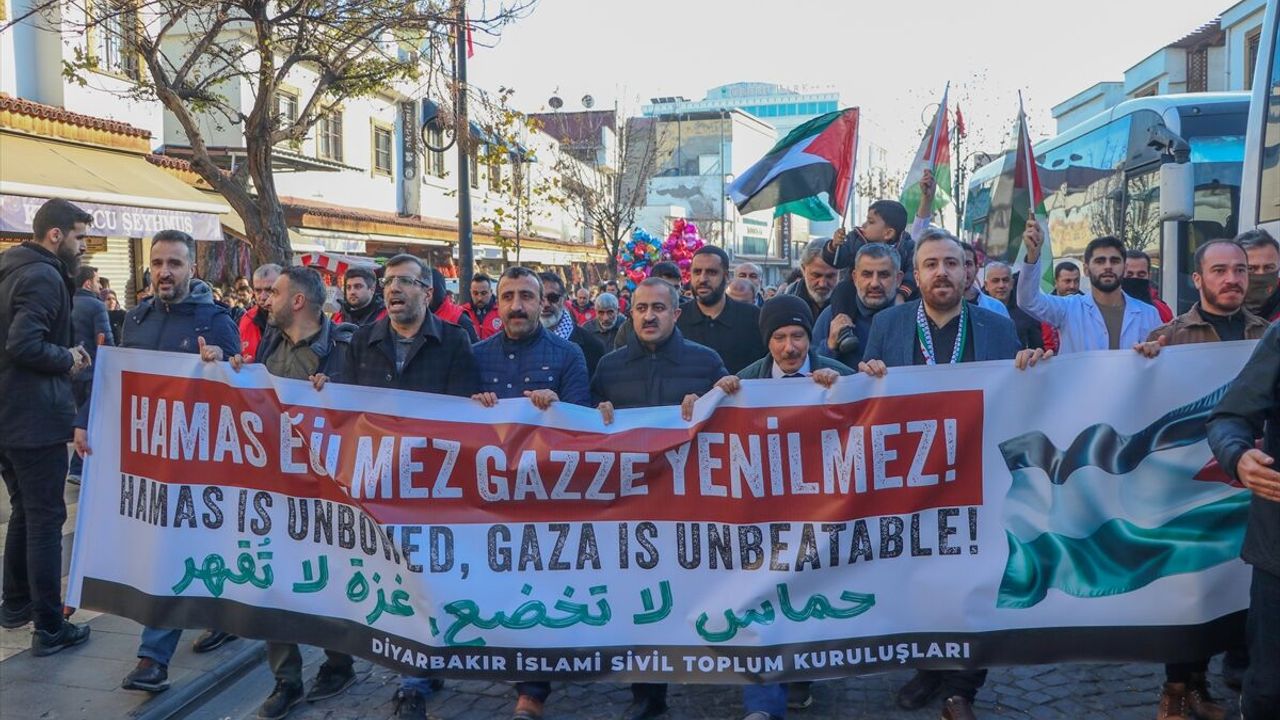 DİYARBAKIR (AA) - Diyarbakır'da sağlık çalışanları, İsrail ordusu tarafından alıkonulan Gazze Şeridi'nin kuzeyindeki Kemal Advan Hastanesi Müdürü Dr. Hüsam Ebu Safiyye'nin serbest bırakılması için yürüyüş düzenledi.
