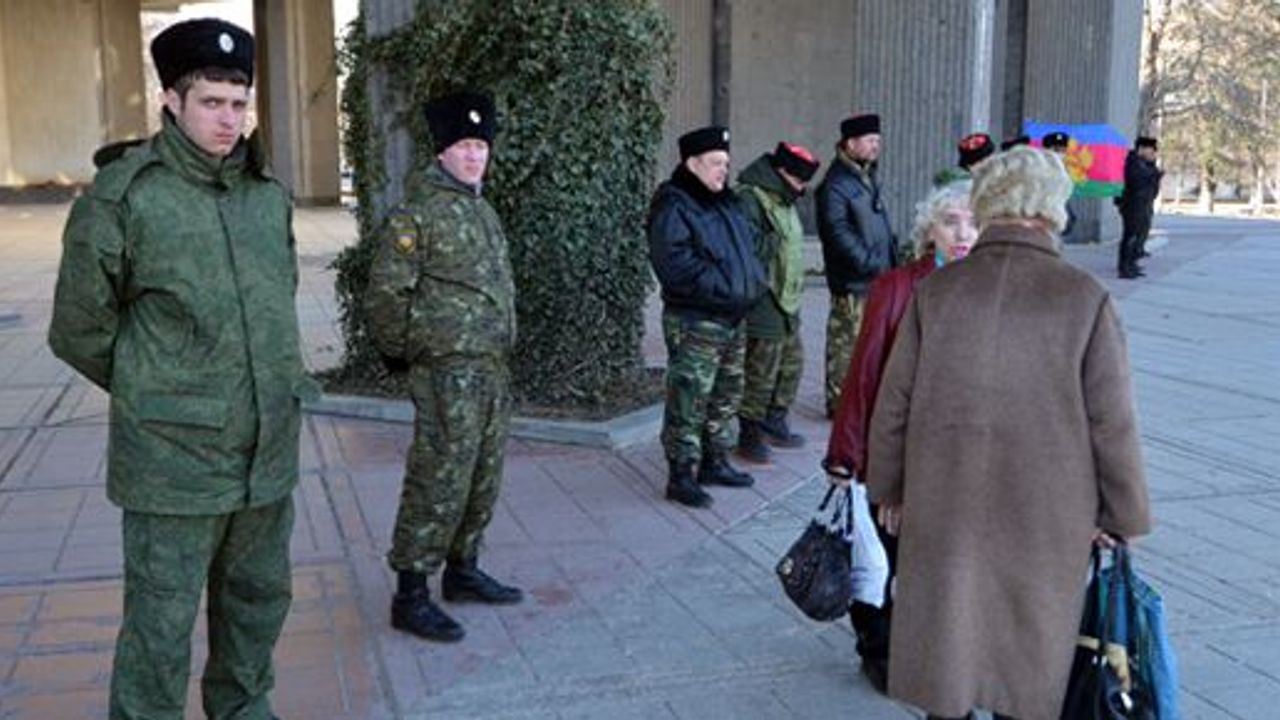 Sokaklardaki billboardlarda ise ‘Rusya ile Birlikte’ sloganı ve referandum içerikli afişler göze çarpıyor. Parlamento önünde Rusya’nın Kuban Eyaleti bayrağı çevresinde kamuflajlı Rus Kozaklar nöbet tutmaya devam ediyor.