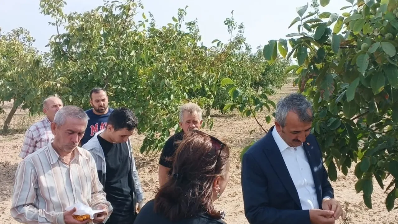 Vali Sezer, köyde bulunan 830 dönümlük alana sahip ceviz bahçesinde üreticileri de dinledi.