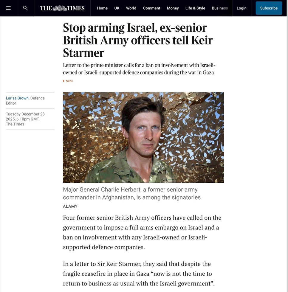 The Times gazetesinin haberine göre, eski askerler Başbakan Starmer'a gönderdikleri mektupta, Gazze'de kırılgan bir ateşkes yürürlükte olsa da "İsrail hükümetiyle olağan işleyişe dönmenin doğru bir zamanda olmadığını" belirtti.