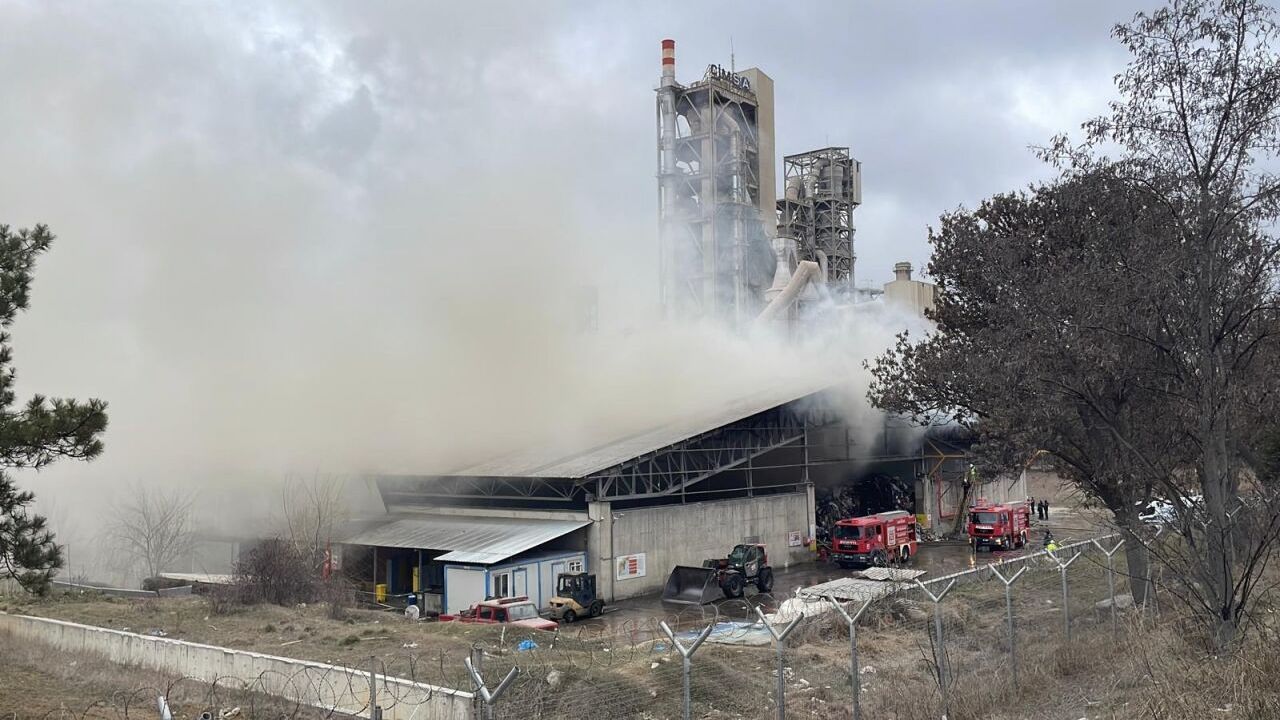 ESKİŞEHİR (AA) - Eskişehir'de bir çimento fabrikasında bulunan geri dönüşüm tesisinde çıkan yangın, söndürülmeye çalışılıyor.