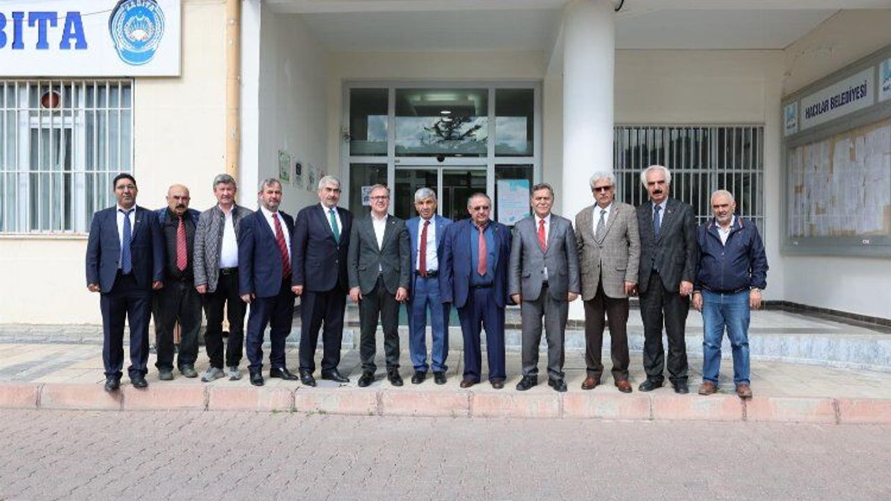 Kayseri Kredi Kefalet Kooperatifi Başkanı Mustafa Alan ve Kayseri Esnaf ve Sanatkârlar Odalarının Başkanları Hacılar Belediye Başkanı Bilal Özdoğan’ı ziyaret etti.Mehmet UZEL / KAYSERİ (İGFA) - Hacılar belediye başkanına tebrik ziyaretleri devam ediyor. Esnaf oda temsilcileri de Başkan Özdoğan'ı makamında ziyaret ederek yeni dönem için başarı dilediler