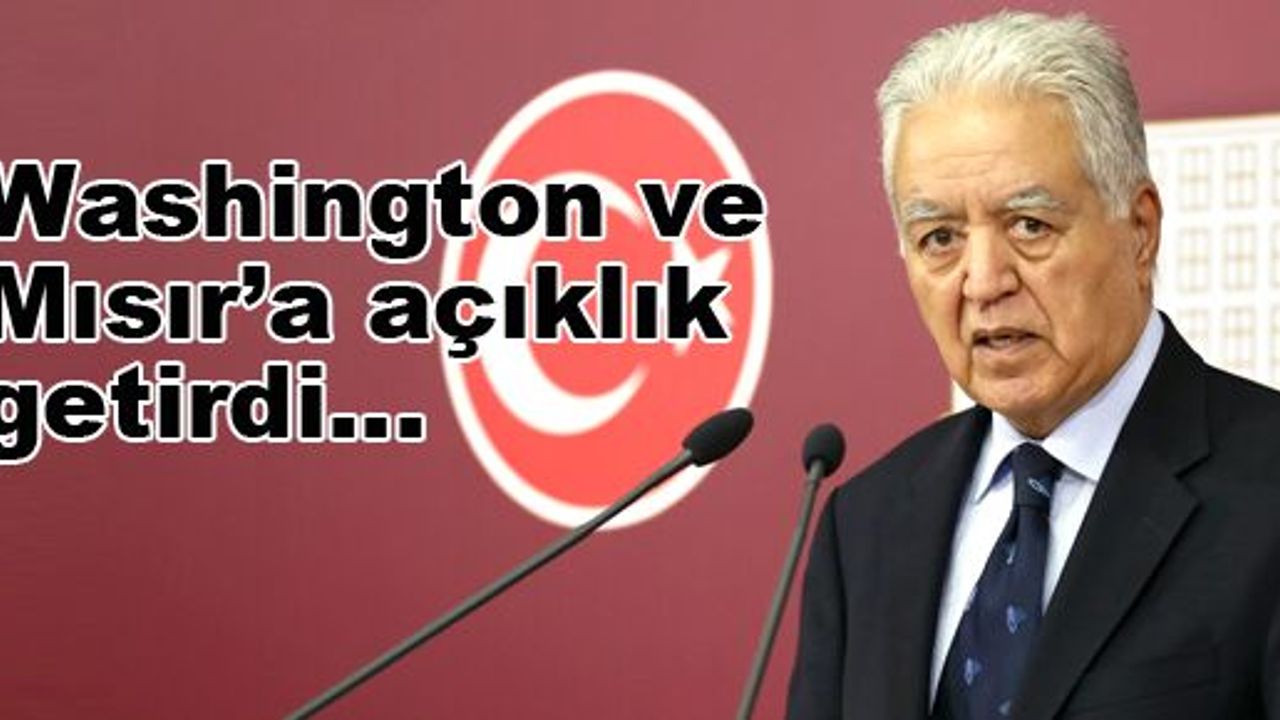 "Paris'e çağırıyorlar, benim yorumum, Paris'e toplantıya katılmak üzere değil, çünkü oradaki toplantıya Fransa, İngiltere ve ABD katılıyor. Sayın Davutoğlu da 'ortalığı fazla karıştırma, uslu dur, sakin ol, bak biz iyi bir iş yapıyoruz, sakın bunu bozacak bir şey yapma' nasihat alıp Türkiye'ye geri dönecek" ifadelerini kullandı.