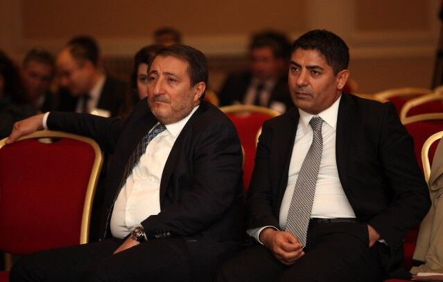 Avrupalı Türk Markalar Birliği Başkanı Cafer Mahiroğlu (solda), Ekonomi Bakan Yardımcısı Adnan Yıldırım (ortada), İTHİB Başkanı İHKİB başkanı Hikmet Tanrıverdi (sağda)