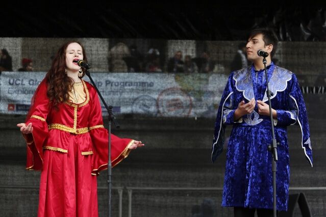 İsveç’ten gelen Nazım Onay ile SOAS Üniversitesi’nde akademisyen Dr. Erdem Özdemir söyledikleri türkülerle Nevruz kutlamasına ayrı renk kattılar. Dr. Erdem Özdemir’in Uygur Türkü Rahima Mahmut ile yorumladığı ‘Çırpınırdı Karadeniz’ türküsü kutlamaya katılanlardan büyük alkış aldı.