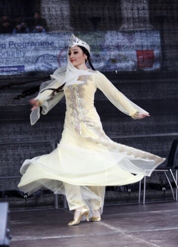 Pilav, Mantı, Samsa, Dolma, Baklava ve Chak-chak gibi yemeklerin sunulduğu Nevruz kutlamasında kurulan çadırlarda büyük kazanlarla yemek pişirildi.